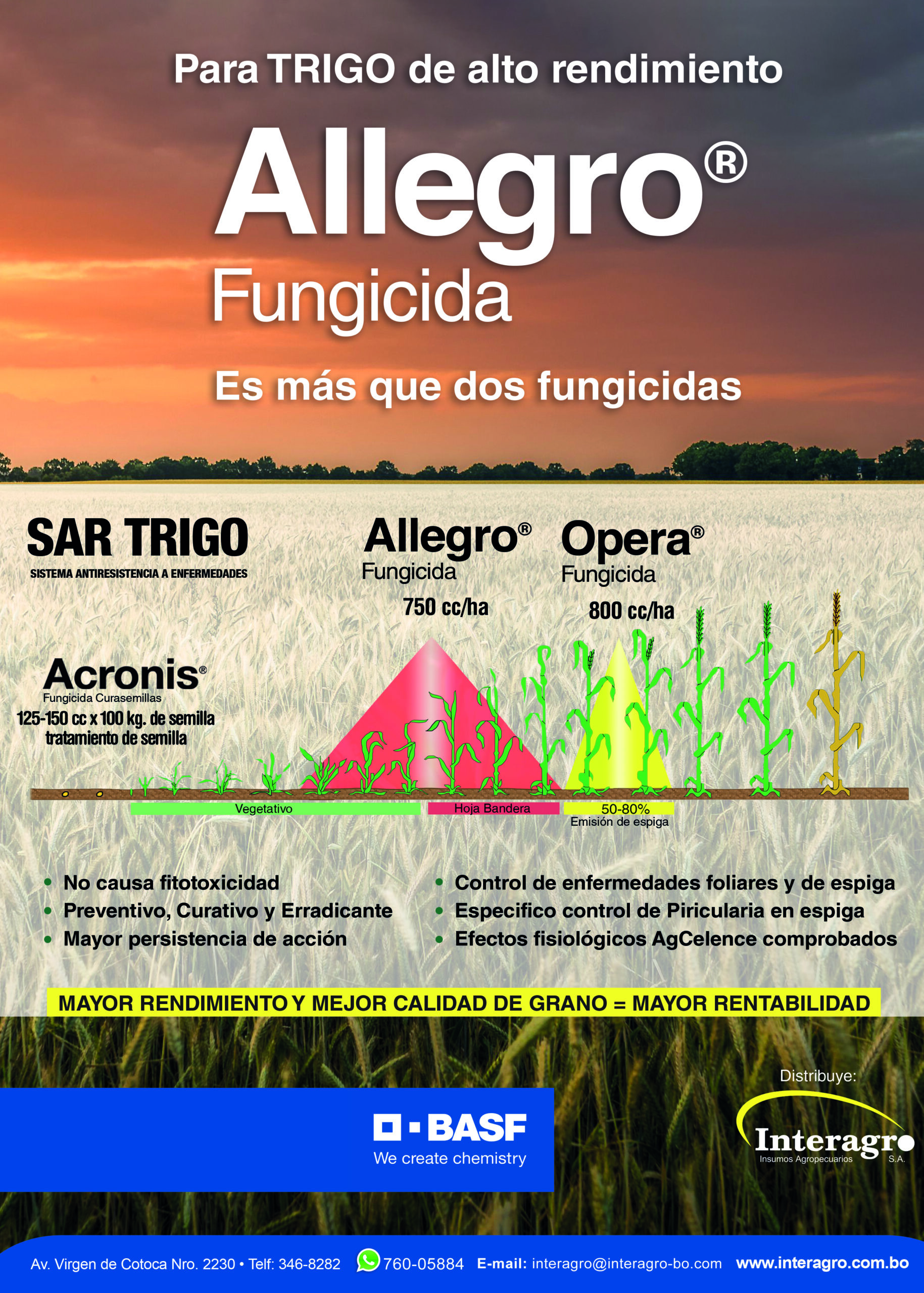 Allegro® presen ta excelente acción protectora, debid o a su acción sobre la inhibición de la germi nación de las esporas, desarr ollo y penetració n de los tubos germi nativos .